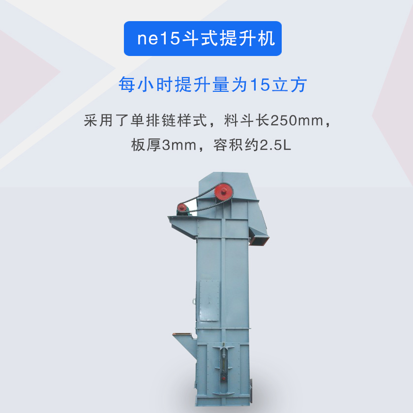 ne15斗式提升機(jī)料斗長(zhǎng)250mm,板厚3mm,容積約2.5L,每小時(shí)提升量為15立方,ne15斗式提升機(jī)采用板式鏈條,耐磨性強(qiáng),適合垂直提升粉狀及塊狀物料.