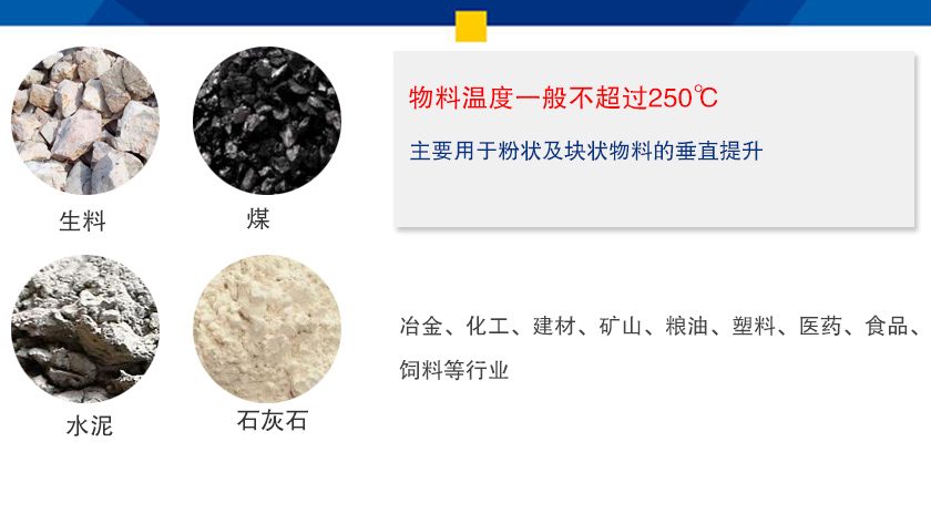 ne15斗式提升機(jī)主要用于粉狀及塊狀物料的垂直提升,如生料、水泥、煤、石灰石、干粘土、熟料等,物料溫度一般不超過250℃,冶金、化工、建材、礦山、糧油、塑料、醫(yī)藥、食品、飼料等行業(yè)。