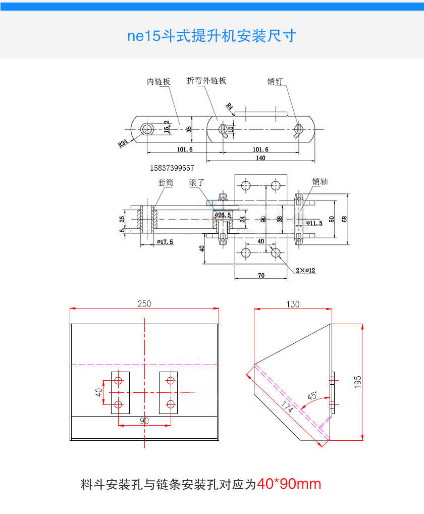 運(yùn)行部件——由料斗和套筒滾子鏈條組成,采取單排鏈。