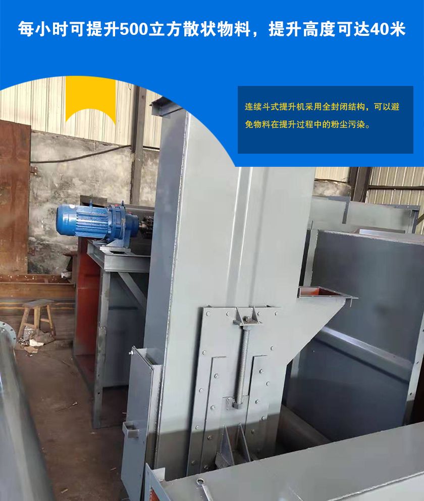 連續(xù)斗式提升機采用鏈條或皮帶進(jìn)行物料的垂直提升工作,提升高度可達(dá)40米,每小時可提升500立方的散裝物料,連續(xù)斗式提升機可按照用戶輸送要求定制設(shè)計.