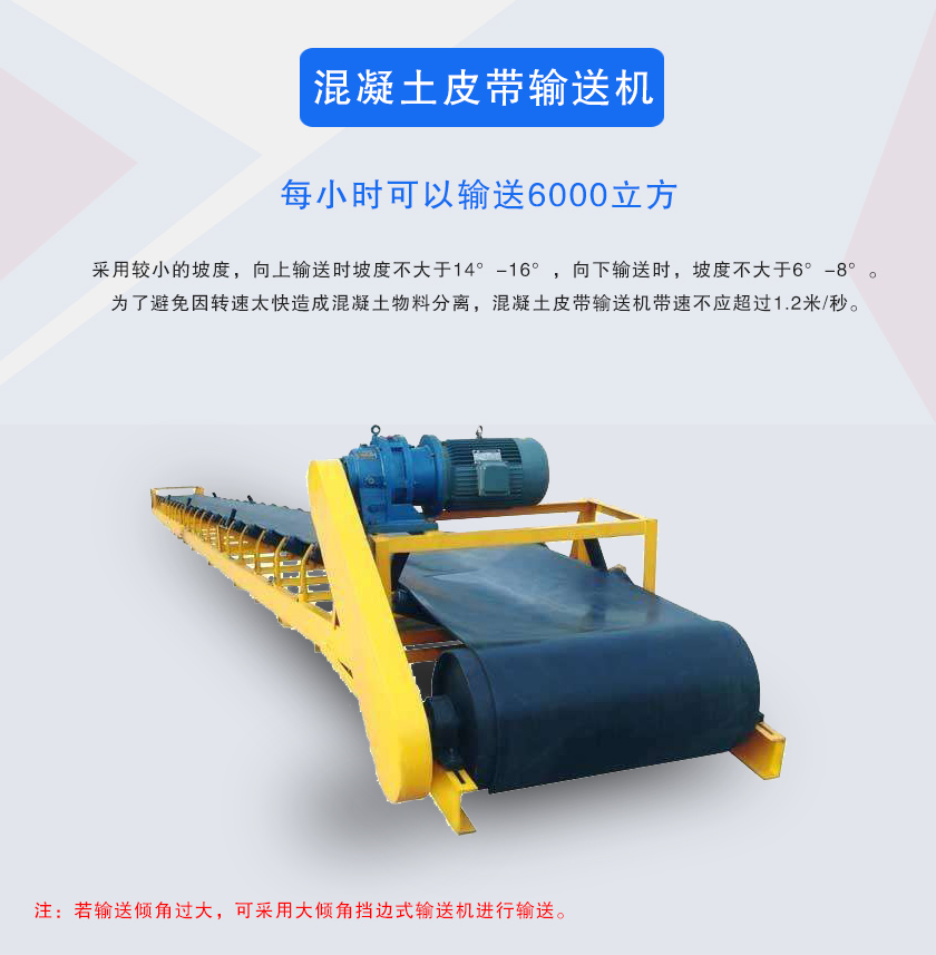 混凝土皮帶輸送機主要用于一般的中大型混凝土攪拌站中,可水平或大傾角布置,混凝土皮帶輸送機采用耐磨性較高的輸送帶,耐磨損,使用壽命長,可根據輸送現(xiàn)場多臺配合使用,也可與其他設備配套.