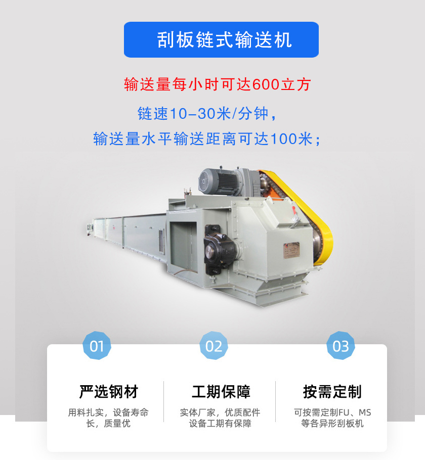 1、鏈速10-30米/分鐘,輸送量每小時可達600立方,水平輸送距離可達100米;