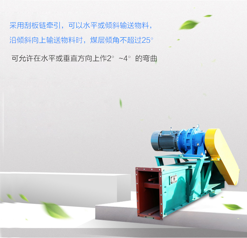 刮板鏈?zhǔn)捷斔蜋C簡稱刮板輸送機,主要采用刮板鏈牽引,可以水平或傾斜輸送物料,沿傾斜向上輸送物料時,煤層傾角不超過25°,向下輸送物料時,傾角不超過20°,當(dāng)煤層傾角較大時,應(yīng)該加裝防滑裝置,刮板鏈?zhǔn)捷斔蜋C相鄰中部槽在水平、垂直面內(nèi)可有限度折曲的叫可彎曲刮板鏈?zhǔn)捷斔蜋C,可允許在水平或垂直方向上作2°~4°的彎曲。