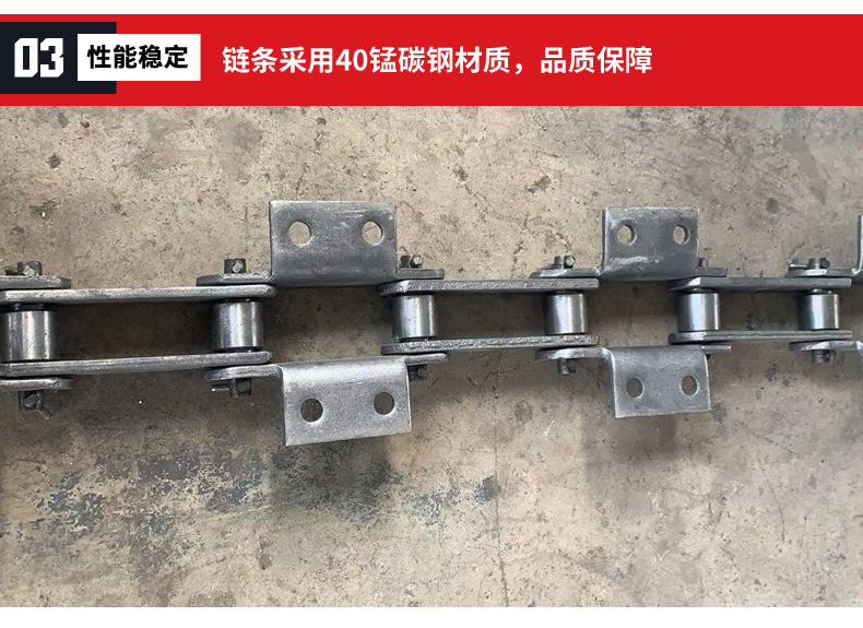 16Mn:有更好的強(qiáng)度,更好的韌性和耐磨性,采用一次沖壓成型,厚度加厚至8mm,鏈條使用壽命長(zhǎng)。