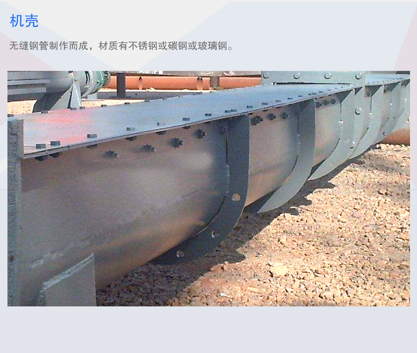 機(jī)殼:無縫鋼管制作而成,材質(zhì)有不銹鋼或碳鋼或玻璃鋼。