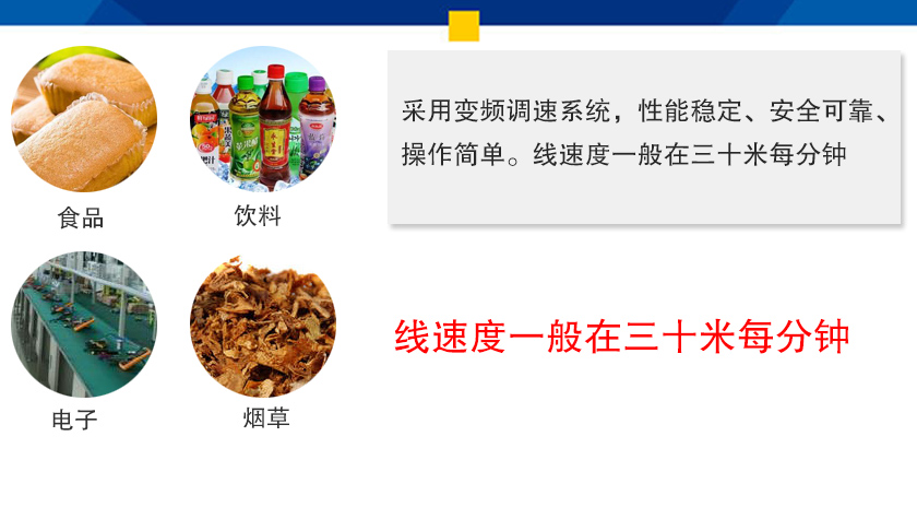 廣泛應(yīng)用在食品、飲料、電子、煙草等行業(yè),我們可以選用較小直徑的滾筒,使轉(zhuǎn)角連接更加方便,解決過(guò)渡問(wèn)題。本設(shè)備適用于各種流水作業(yè)的生產(chǎn)廠家,中小型物品的物流輸送,動(dòng)力系統(tǒng)采用變頻調(diào)速系統(tǒng),性能穩(wěn)定、安全可靠、操作簡(jiǎn)單。線速度一般在30米/分鐘。