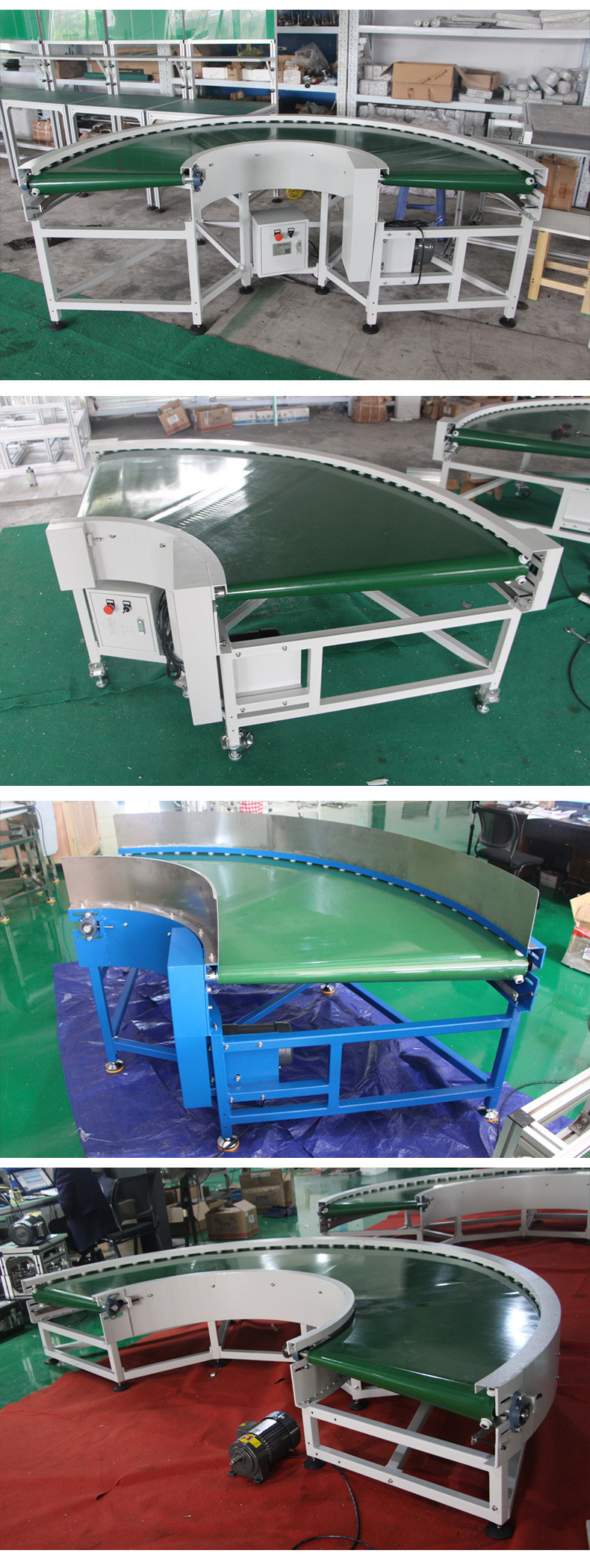 轉(zhuǎn)彎皮帶輸送機(jī)簡(jiǎn)稱轉(zhuǎn)彎皮帶機(jī)可30°,45°,90°和180°輸送物料,轉(zhuǎn)彎皮帶輸送機(jī)輸送帶可根據(jù)輸送物料的性質(zhì)選擇PVC、PU材質(zhì),除輸送普通物料外,還可選擇滿足耐油、耐腐蝕、防靜電等特殊物料輸送的皮帶材質(zhì).