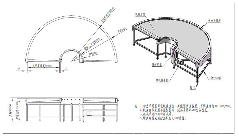 轉(zhuǎn)彎皮帶輸送機(jī)簡(jiǎn)稱轉(zhuǎn)彎皮帶機(jī),是輸送流水線中使用比較廣泛的一種設(shè)備,用于輸送帶與輸送帶之間彎角的連續(xù)或間歇運(yùn)動(dòng)來(lái)輸送各種輕重不同的物料,常見(jiàn)的角度為30°,45°,90°和180°,能夠滿足各種轉(zhuǎn)彎輸送的工藝要求,轉(zhuǎn)彎皮帶輸送機(jī)輸送帶可根據(jù)輸送物料的性質(zhì)選擇PVC、PU材質(zhì),除輸送普通物料外,還可選擇滿足耐油、耐腐蝕、防靜電等特殊物料輸送的皮帶材質(zhì),轉(zhuǎn)彎皮帶輸送機(jī)機(jī)架采用碳鋼或不銹鋼材質(zhì)制作,驅(qū)動(dòng)電機(jī)可根據(jù)用戶需求安裝在機(jī)架上面或者下面,有速度調(diào)節(jié)幽囚的用戶還可選擇變頻調(diào)速或無(wú)級(jí)變速減速電機(jī)。