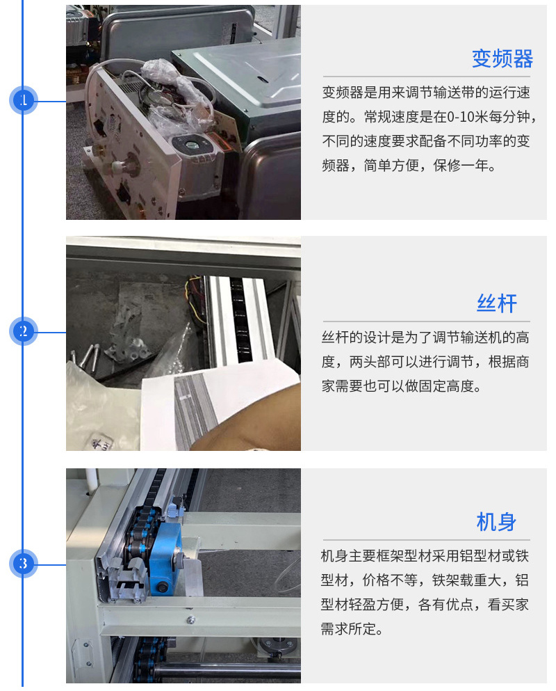 1、料斗:固定于膠帶(或牽引鏈)上,有三種:深斗(適合于松散物料),淺斗(黏性較大的物料),三角斗(比重大且成塊狀的物料)。