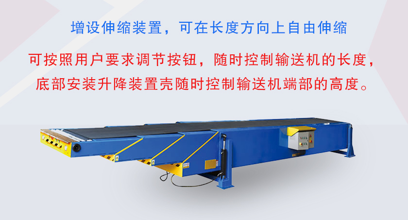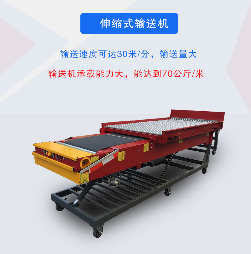 伸縮式輸送機(jī)即伸縮式皮帶,可以根據(jù)工作面位置變化調(diào)整自身長度的輸送機(jī),伸縮式輸送機(jī)可在長度方向上自由伸縮,自由調(diào)控輸送長度,減少了裝卸貨物的時間,降低了工人的勞動強(qiáng)度,可用于輸送粉狀、粒狀物料輸送.