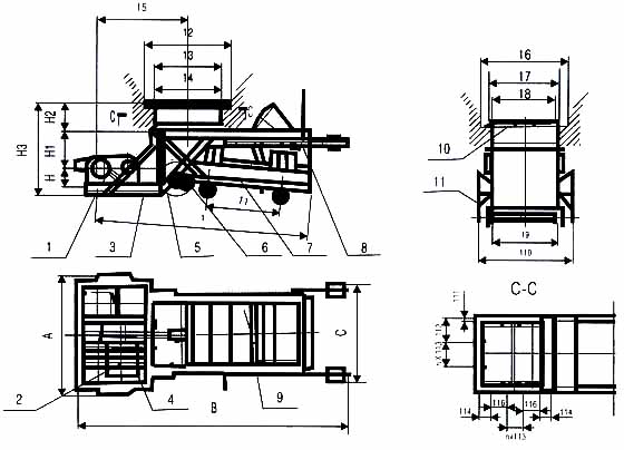 K型往復(fù)式給料機(jī)是由機(jī)架、底板(給料槽)傳動(dòng)平臺(tái)、漏斗閘門、托輥等組成。其傳動(dòng)原理:當(dāng)電動(dòng)機(jī)開動(dòng)后,經(jīng)彈性聯(lián)軸器、減速器、曲柄連軒機(jī)構(gòu)拖動(dòng)傾斜的底板在插輥上作直線往復(fù)運(yùn)動(dòng),將煤均勻地卸到運(yùn)輸機(jī)械或其它篩選設(shè)備上。該機(jī)設(shè)有帶漏斗、帶調(diào)節(jié)閥門和不帶漏斗、不帶調(diào)節(jié)閥門兩種形式。