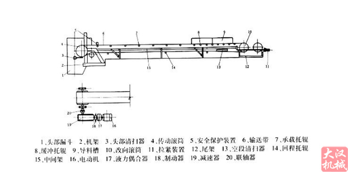 3.托輥部分:分槽形、平行、調(diào)心和緩沖托輥等。