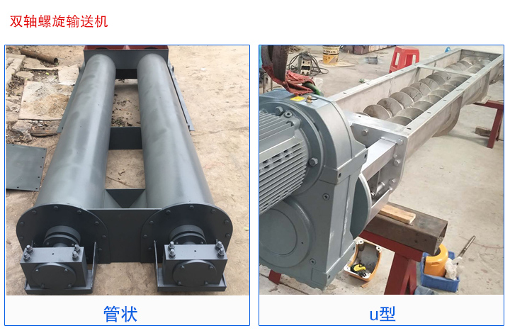多軸螺旋輸送機(jī)擁有多個(gè)(三個(gè)四個(gè)常見)相同長度的軸承和螺旋葉片平行放置在同一個(gè)槽體內(nèi),它的體格較大,算是一種大型機(jī)器,寬度也大,因其特性原因,它的機(jī)身一般為槽體(U型);單軸螺旋輸送機(jī)只有一個(gè)軸承和螺旋葉片,體格小,結(jié)構(gòu)簡單,它的機(jī)身可以是管狀的或是U型的。