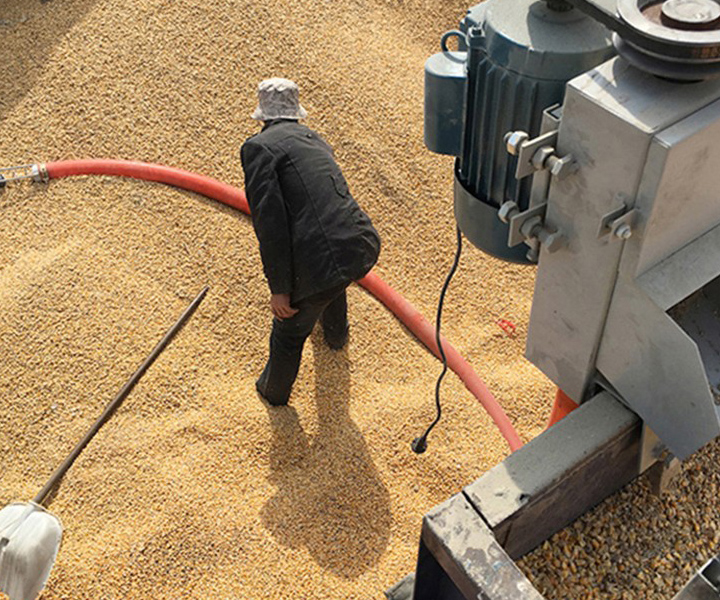 車載吸糧機(jī)可根據(jù)現(xiàn)場(chǎng)工作量要求采用單管和雙管,雙管設(shè)計(jì)的可在地面來回推動(dòng),進(jìn)糧側(cè)和出糧側(cè)均輕便自如。糧食點(diǎn)卸、倉(cāng)裝,宜采用雙管。單管設(shè)計(jì)的車載吸糧機(jī)電機(jī)在出糧側(cè),體積稍大,適合在不經(jīng)常換位的固定場(chǎng)所使用。