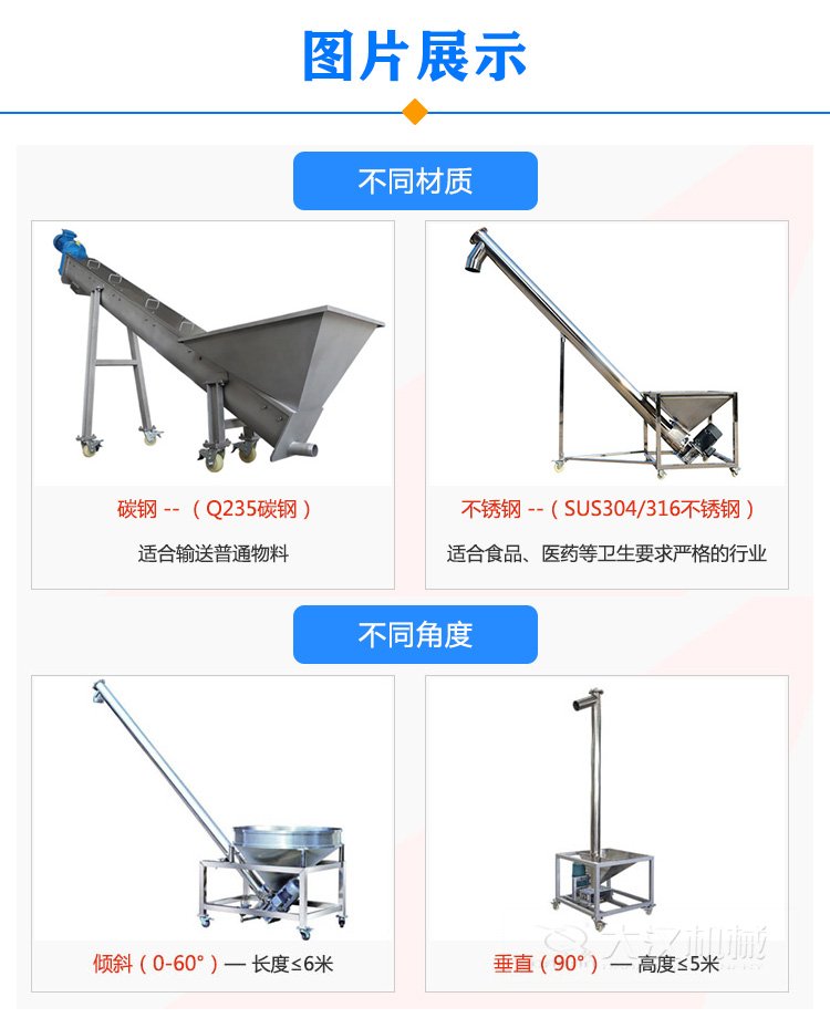 以上是對(duì)可移動(dòng)傾斜螺旋輸送機(jī)的介紹,這種移動(dòng)性設(shè)計(jì)可提高工廠內(nèi)的靈活性,廣泛應(yīng)用在裝卸位置經(jīng)常變動(dòng)的場(chǎng)合。
