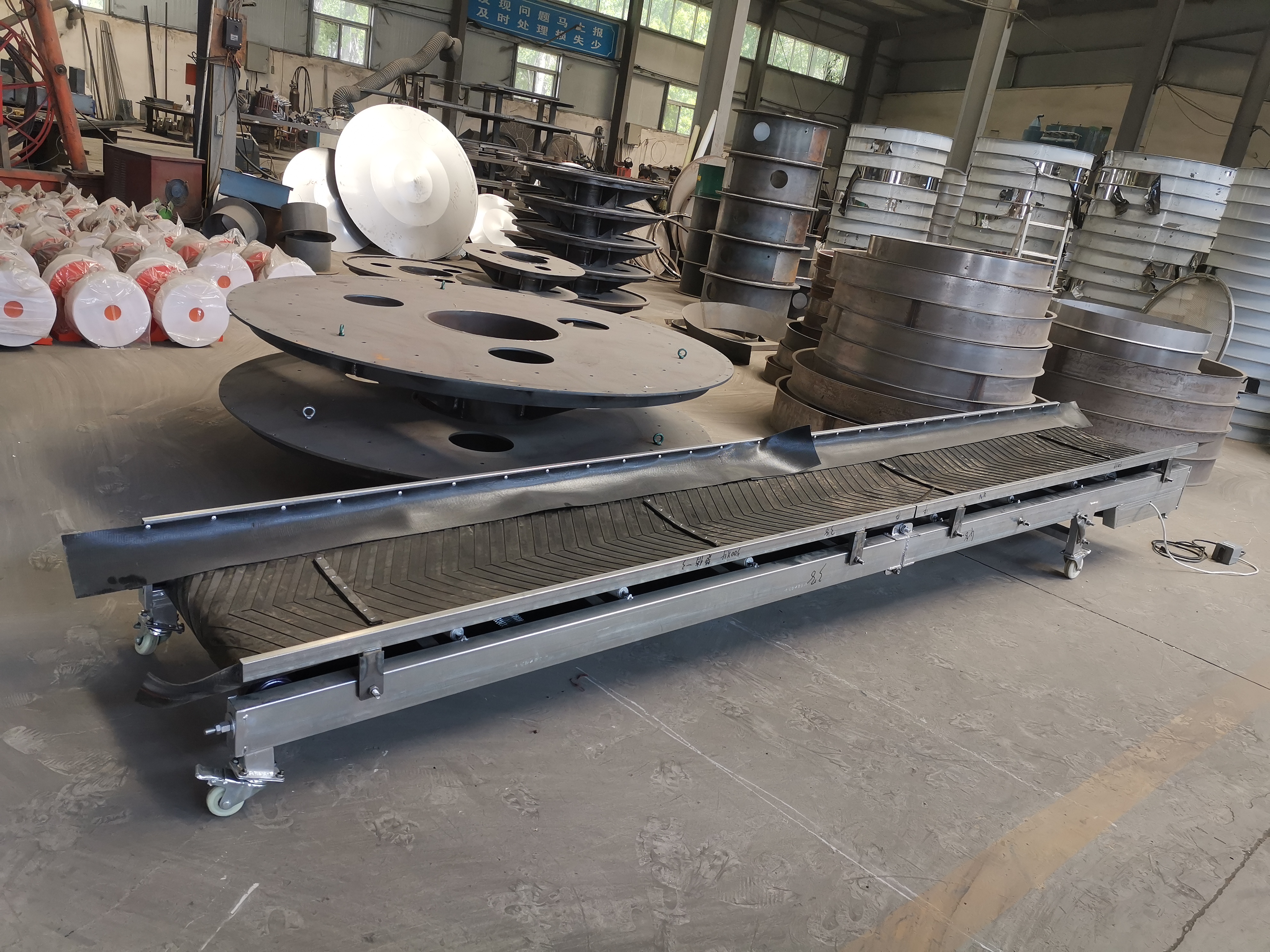 2、水平帶式輸送機(jī)底部裝有萬(wàn)向輪,可隨處移動(dòng)。