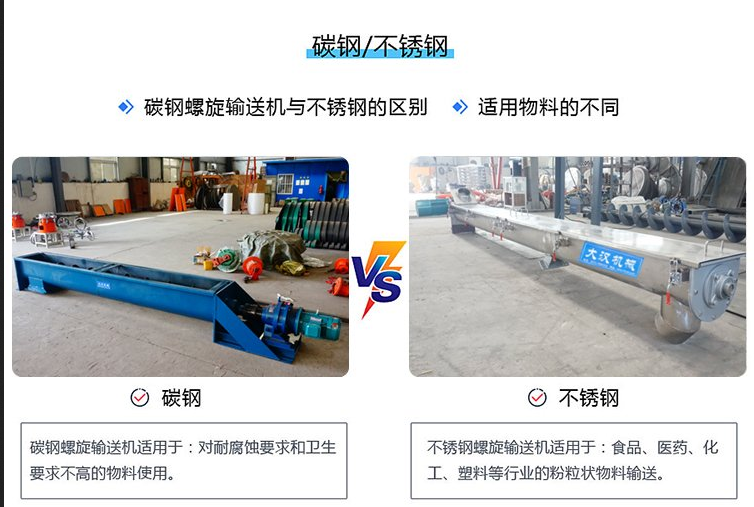 在原材料上,304不銹鋼會比Q235碳鋼偏貴,所以不銹鋼無軸螺旋輸送機的價格會高于碳鋼材質(zhì)的。