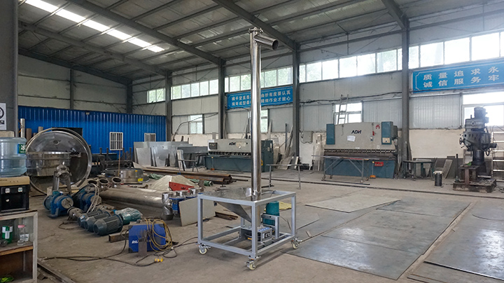 垂直螺旋輸送機(jī)由水平進(jìn)料螺旋和垂直螺旋組成,從料倉(cāng)或料斗或從上游進(jìn)料裝置進(jìn)料,保證進(jìn)料有足夠的倉(cāng)壓,確保物料能順利地向上輸送,垂直提升高度可達(dá)8米。