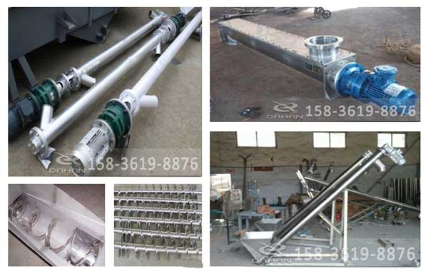 不銹鋼螺旋輸送機的幾種工作方法: 重力滑下法。螺旋輸送機螺旋的轉速較低,在螺旋面上的物料受到重力的影響遠比離心力的影響大,由于螺旋的轉動物料不斷沿螺旋面向下滑,于是產生軸向的位移,cx螺旋機基本上屬于此種原理。此種原理的螺旋機的填充系數值一般都小于05。因為充填過多,物料不是沿螺旋面滑下,而是被螺旋的攪動使它翻越螺旋軸落下,并不能獲得大的軸向速度。既然慢速螺旋的物料受重力的影響較大,顯然它不能用于垂直螺旋或傾斜角較大的向上輸送情況。 滑下法原理,雖然廿值小,輸送能力低,但物料處于輕松散的自由滾落的狀態(tài),較少受到擠壓,適用于易結塊、磨琢性大的物料。當采用標準螺旋時,不但能保持較快的滑下速度,并且對傾斜輸送有一定的適應能力(傾角一般在20°以內)。 推擠法。此法用于倉底的卸料輸送螺旋,物料經常充滿螺旋,顆粒物料受到的靜壓較大,每粒物料本身的重力遠小于其他作用力(螺旋推力、摩擦力、靜壓力)。此種螺旋的阻力是很大的,它要克服較大壓力下形成的摩擦力。工作時物料好象是螺母,螺旋起螺釘似的作用,只要螺母不轉動(或轉動較慢),利用螺釘的旋轉,就可以使螺母沿軸向移動,倉底卸料螺旋常采用變節(jié)距螺旋,在出口端的節(jié)距較大。 離心誘導法。用于垂直的傾斜度較陡的螺旋輸送機,或轉速較高的螺旋輸送機,其工作特點是物料充填量介于兩種之間,在螺旋的高轉速下,松散的物料受到離心力的作用遠比重力等其他外力的影響大。