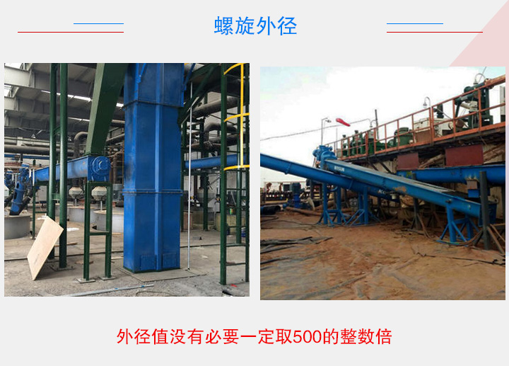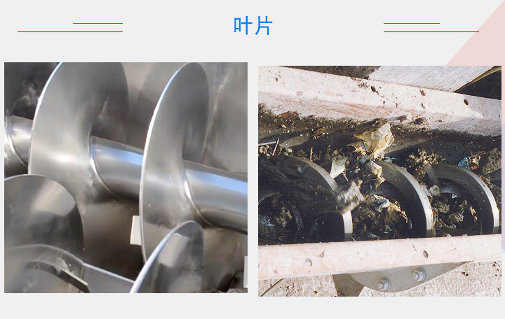 不同性質的物料對螺旋輸送機的葉片形狀、材質有不同的要求。針對一般物料,可選擇碳鋼材質的有軸葉片,對于一些粘性大,纏繞性物流,就需要選擇無軸螺旋葉片,對衛(wèi)生環(huán)境有要求的物料,葉片一般建議選擇不銹鋼材質,磨琢性強的物料則要選擇錳鋼材質的葉片。
