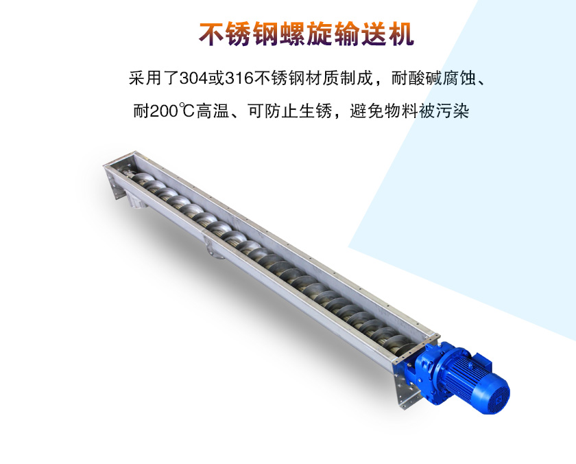 不銹鋼螺旋輸送機采用了304或316不銹鋼材質制成,耐酸堿腐蝕、耐200℃高溫、可防止生銹,避免物料被污染,是食品、醫(yī)藥行業(yè)專用的一種輸送機設備,那么不銹鋼螺旋輸送機多少錢一臺呢?接下來就來為您介紹一下:
