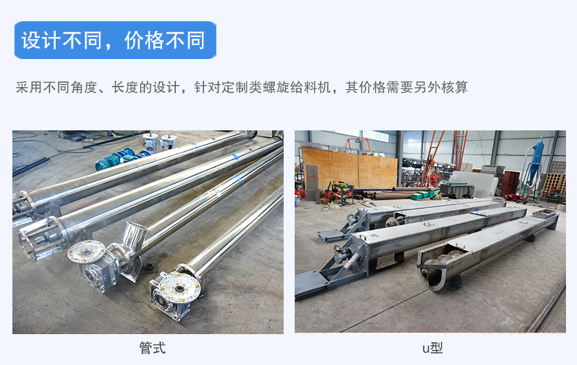 螺旋給料機可以針對用戶要求采用不同角度、長度的設計,針對定制類螺旋給料機,其價格需要另外核算,不同設計對于螺旋給料機的用材成本和制造成本是不同的。